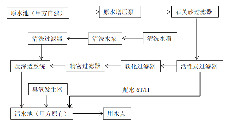 本工藝方案是根據用戶要求,本著工藝設備先進、可靠、最大限度地提高系統的性能價格比的原則進行設計。系統采用“原水系統+預處理系統+反滲透膜系統+配水系統+消毒系統為一體的全自動成套設備”水處理工藝,該系統能夠保證需方各類品質用水需要,方案設計合理、運行穩定、并已在多項類似工程中得到應用及檢驗。