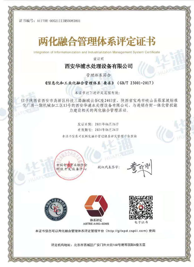 通過兩化融合管理體系認證,為公司可持續發展提供了科學、有效的指導,促進了戰略目標與信息化工作的有機結合。公司將以兩化融合管理體系為契機,通過信息化系統建設,全面提升企業管理水平和管理效益,為公司戰略可持續發展提供強有力的動力,持續改進與提升!華浦全體員工也將齊心協力,樹立行業典范,引領環保水處理規范發展,并逐步成為行業標桿企業!